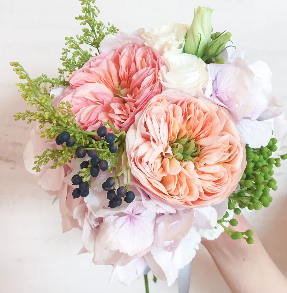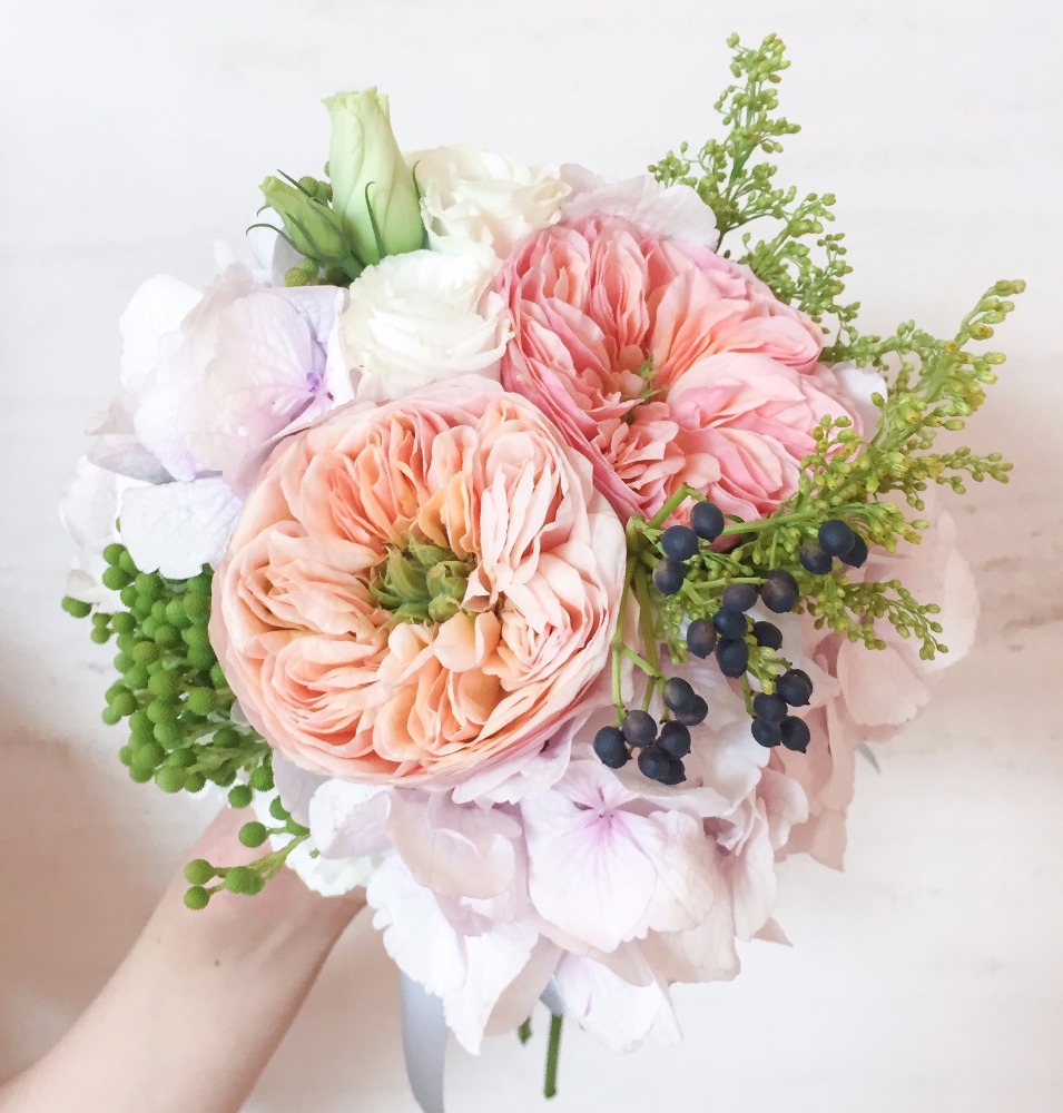 The very feminine side of us! Pink hydrangea with vuvuzela roses get along so well and this bouquet looks so girly girl but definitely not a boring type of girl! :) This actually is a small bouquet, it of course could be custom-made into a bigger size on request.